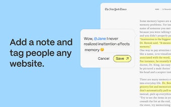 Recall은 사용자가 모든 웹사이트에서 텍스트를 강조하고 메모를 추가할 수 있도록 하여 웹 브라우징 경험을 향상시키기 위해 설계된 다목적 Chrome 추가 기능입니다. 이 도구는 개인 메모 작성 또는 다른 사람을 태그하여 협업 논의를 가능하게 하여 페이지에서 직접 실시간 참여를 촉진합니다. 이 기능은 그룹 프로젝트나 논의에 특히 유용합니다.